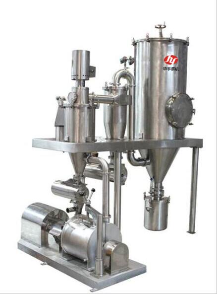 本機(jī)主要有粉碎機(jī)、篩粉機(jī)、旋風(fēng)分離器、除塵布袋,操作平臺(tái)、電器控制箱等部分組成。原料首先經(jīng)過(guò)除鐵器進(jìn)入粉碎機(jī),粉碎后由風(fēng)送到分離器,經(jīng)過(guò)分離器出料口進(jìn)入篩粉機(jī)入料口,由篩粉機(jī)主軸帶動(dòng)絞龍自動(dòng)喂料,同時(shí)帶動(dòng)導(dǎo)向推板將粉末推進(jìn),細(xì)粉經(jīng)過(guò)篩網(wǎng)落入布袋,粗粉返回粉碎機(jī)內(nèi)再粉碎。